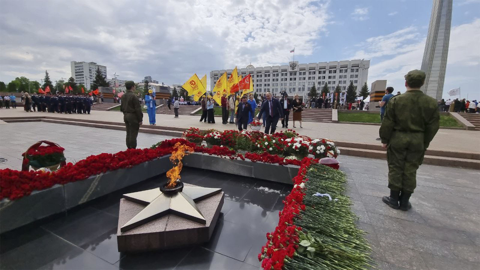 Представители СПРАВЕДЛИВОЙ РОССИИ – ЗА ПРАВДУ приняли участие в торжественном возложении цветов к Вечному огню у горельефа "Скорбящей Матери – Родине" на площади Славы в Самаре, а также в Вахте Памяти в Клявлино.