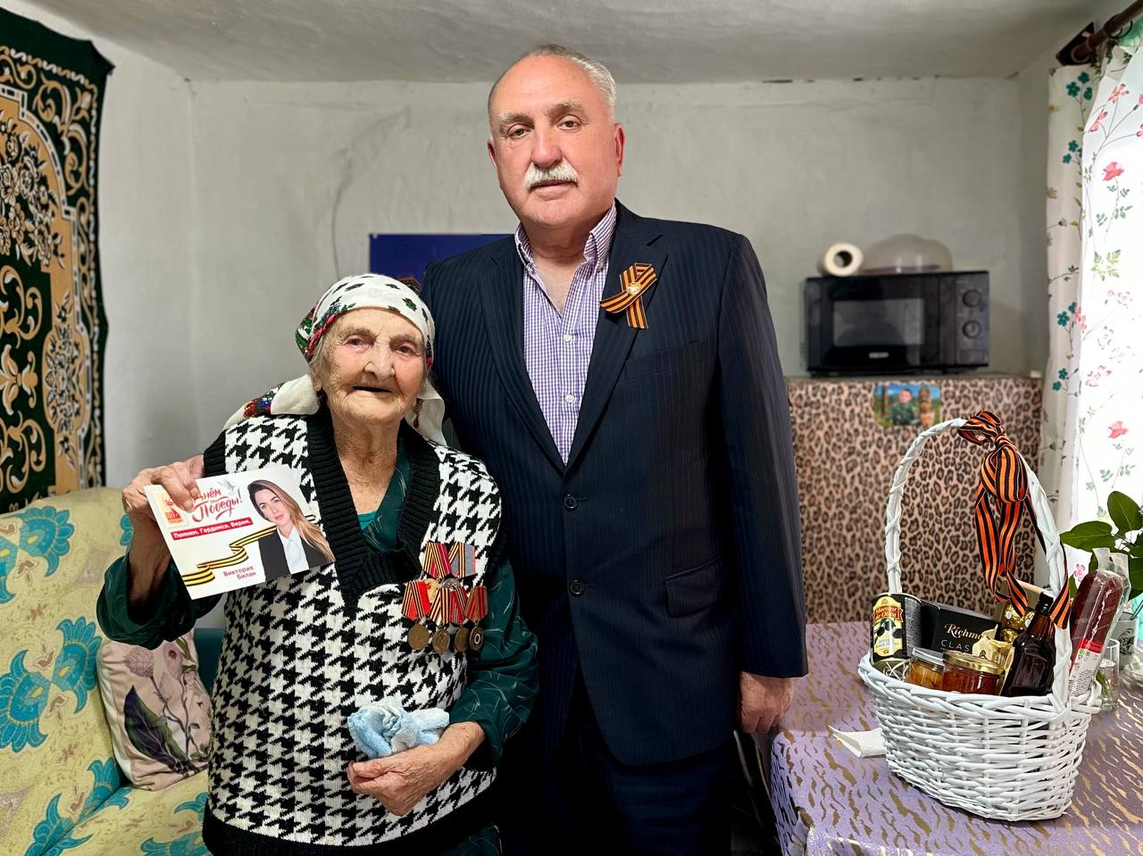 В преддверии 9 Мая депутат от Партии СПРАВЕДЛИВАЯ РОССИЯ – ЗА ПРАВДУ в Государственном Совете Республики Крым Виктория Билан вместе с помощниками собрала праздничные корзины и подготовила открытки для ветеранов, узников лагерей и тружеников тыла, чтобы поздравить их с 80-летием Великой Победы. Поздравления и подарки получили участники Великой Отечественной войны из Сак, Евпатории и Сакского района.