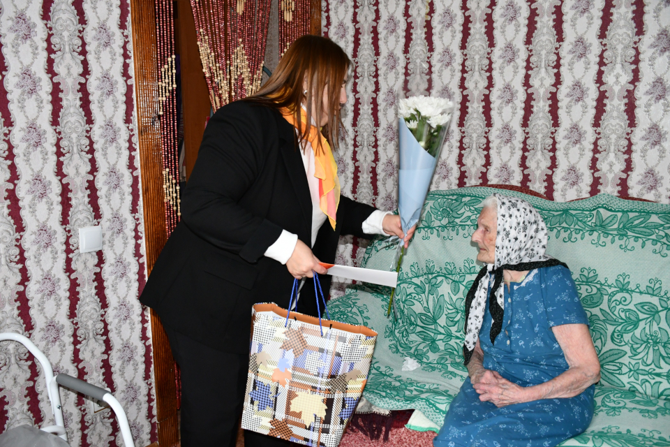 Также накануне празднования 80-летия Великой Победы представитель Совета местного отделения Партии СПРАВЕДЛИВАЯ РОССИЯ – ЗА ПРАВДУ в городе Кирсанове Светлана Яшина посетила труженицу тыла Надежду Петрову, чтобы поздравить ее с праздником.