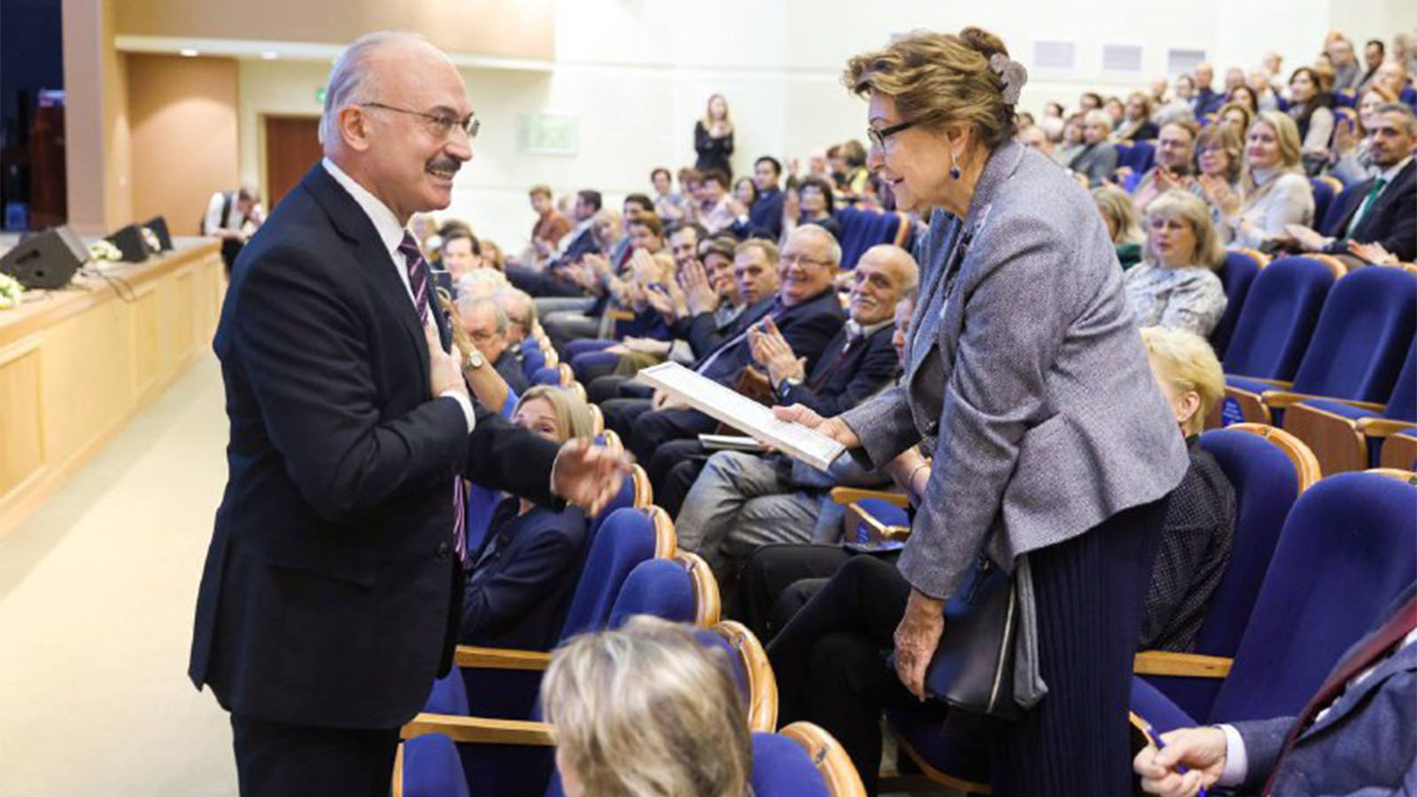 В завершение выступления он поздравил участников конференции с недавно прошедшим Днём преподавателя высшей школы. Особого внимания удостоилась учёный и педагог, профессор кафедры конституционного и муниципального права юридического факультета МГУ имени М.В. Ломоносова Наталья Богданова, чьи жизненные принципы и профессиональный путь символизируют, что именно добродетель питает силу права.