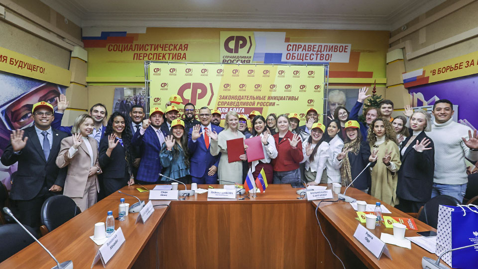 Председатель Партии СПРАВЕДЛИВАЯ РОССИЯ, руководитель партийной фракции в Госдуме Сергей Миронов принял участие в церемонии подписания соглашения о сотрудничестве между "Молодёжью СПРАВЕДЛИВОЙ РОССИИ" и молодёжным крылом Единой социалистической партии Венесуэлы. Модератором мероприятия выступила руководитель Центрального Аппарата Партии СПРАВЕДЛИВАЯ РОССИЯ, Председатель Координационного Совета "Молодёжи СР" Анастасия Павлюченкова.