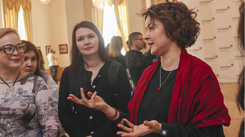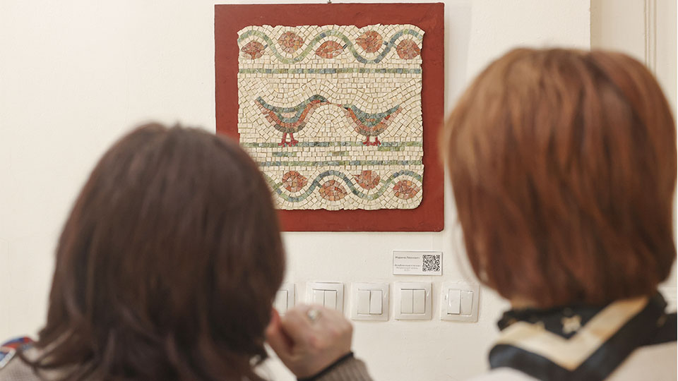 "Он проводил для нас экскурсии, и на одной из экскурсий мы увидели мозаичные работы – потрясающие, яркие, красивые. Когда мы ушли с этой выставки, девушки сказали: вот бы нам самим попробовать. Мы эту идею вынашивали долго, искали партнёров. Первая наша выставочная работа называлась "Дары моря". Её мы посвятили памяти Зураба Константиновича Церетели. Сегодня в этом зале наша первая самостоятельная выставка. Благодаря Сергею Михайловичу она проходит в сердце нашей страны", – отметила директор АНО "Маяк" Ануза Мурзабаева.