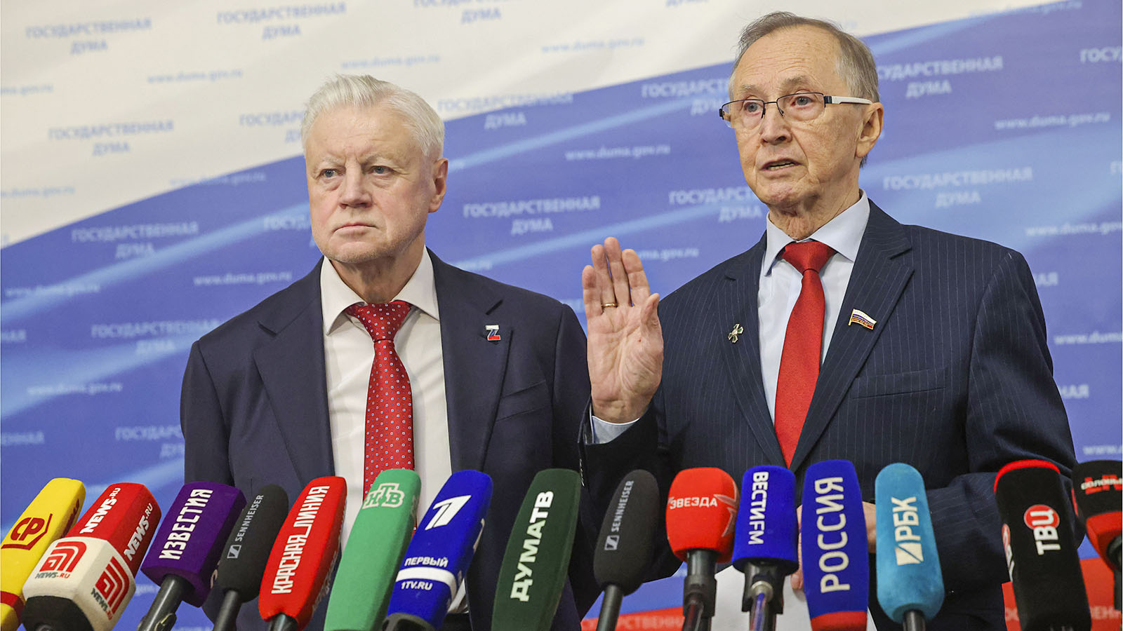 Выступление Сергея Миронова и Николая Бурляева перед пленарным заседанием Госдумы