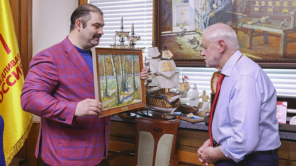 Председатель Партии СПРАВЕДЛИВАЯ РОССИЯ, руководитель партийной фракции в Госдуме Сергей Миронов 27 февраля провел встречу с Заслуженным художником России Александром Шиловым.