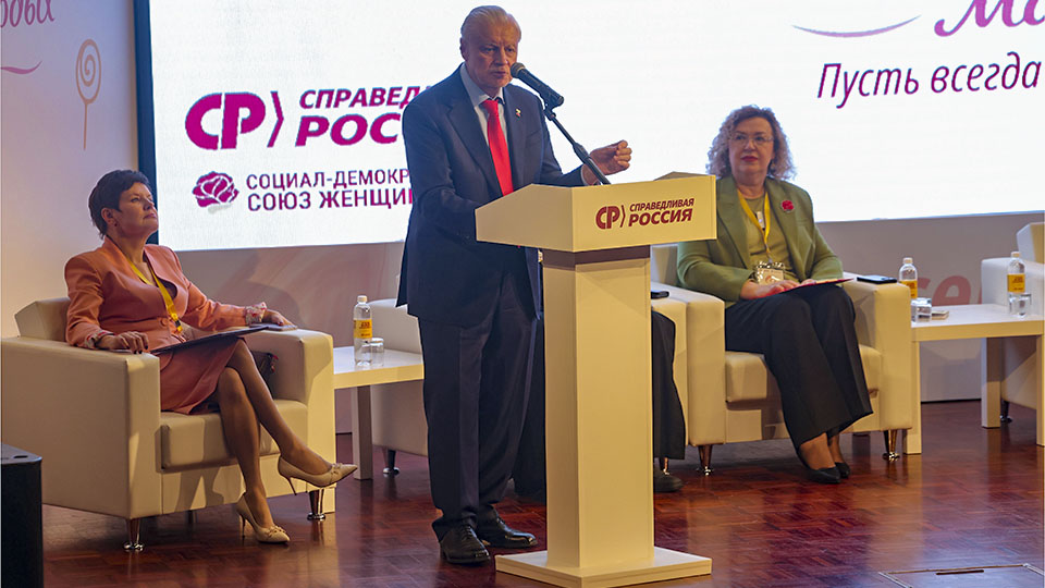 Председатель Социал-демократического союза женщин России Ольга Епифанова в своём выступлении подчеркнула, что "именно благодаря Сергею Миронову женский голос в политике звучит громко и весомо".
