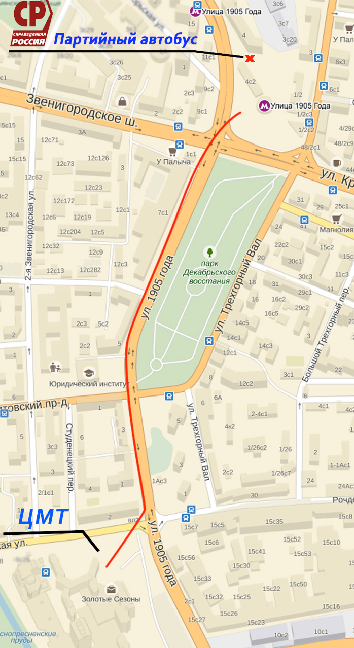 Схема организации проезда в Центр международной торговли от метро "Улица 1905 года"